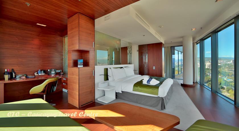 Услуги в номере: Кондиционер, Холодильник, Мини-бар, Кофеварка/чайник, Индивидуальная ванная комната, Фен, Утюг, гладильная доска, Письменный стол, Система кондиционирования воздуха, Открывающиеся окна, Пресс для брюк, Телефон с прямым набором номера, Затемненные шторы, Электронные или магнитные ключи, Ручной душ, Зеркало для макияжа, Тапочки, Ванна и душ отдельно, Напольные весы, Большой сейф в номере (вмещающий ноутбук), Спутниковое телевидение, Проекционная ТВ-панель, Жидкокристаллический телевизор, Вид на город, Вид на реку.