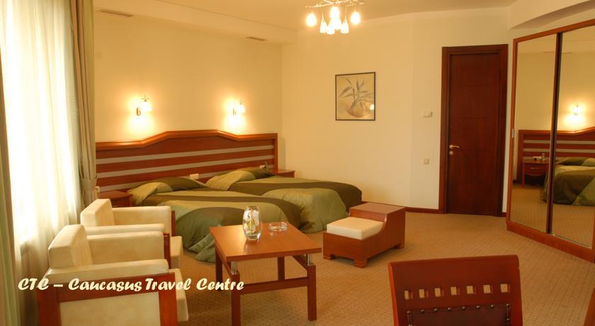 Номерный фонд: 15 комфортабельных номеров из них: 6 одноместных, 6 двухместных и 3 номера Suite. Номера соответствуют европейским стандартам. В каждом номере есть – спутниковое телевидиние, интернет, телефон, мини-бар, отопительная система, фен, противопожарная система и кондиционер. В гостинице имеется система безопасности, все контролируется видео камерами, кроме номеров. Двери номера закрывается с помощью кодированого замка с помощью пластиковой карточки.